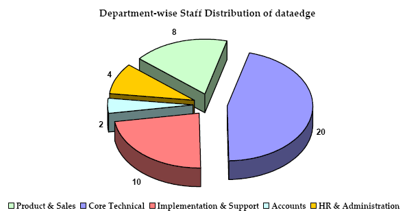In terms of numbers dataedge is boarded by a total of 40 employees staffed in all the departments as described in the following diagram: |